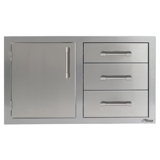 Alfresco 32-Inch Stainless Steel Right-Hinged Soft-Close Door & Triple Drawer Combo – AXE-DDC-R-SC