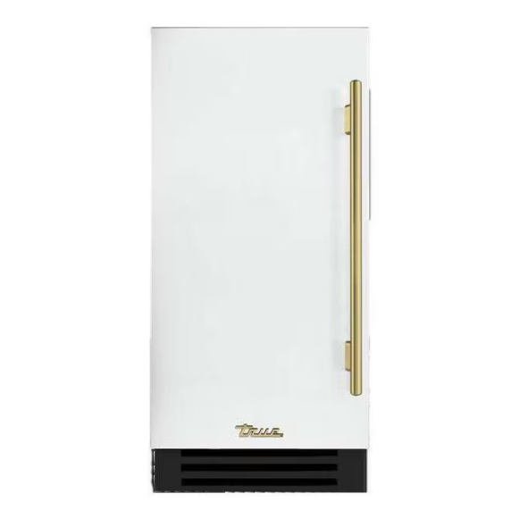 True ADA Height 15 Inch 75 Lb. Left Hinge Outdoor Ice Maker – Matte White w/ Brass Handle – TUIADA-15-LS-A~030-H01