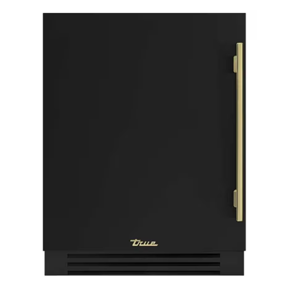 True ADA Height 24 Inch 105 Can 12 Bottle Left Hinge Outdoor Beverage Center – Matte Black w/ Brass Handle – TUBADA-24-LS-A~027-H01
