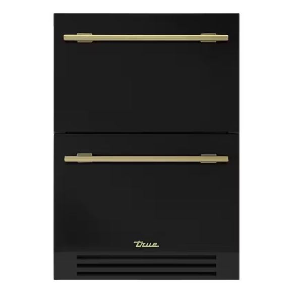 True ADA Height 24 Inch 5 Cu. Ft. Outdoor Refrigerator Drawers – Matte Black w/ Brass Handles – TURADA-24-D-A~027-H01