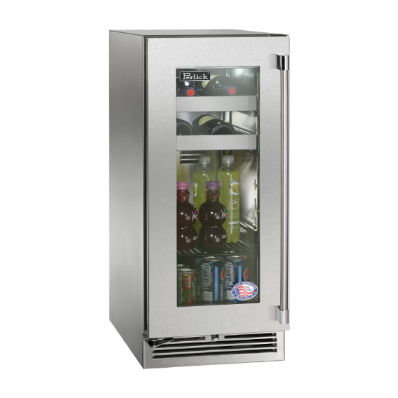 Perlick 15-Inch Signature Series Marine & Coastal Series Stainless Steel Glass Door Outdoor Beverage Center – Right Hinge – HP15BM-4-3R