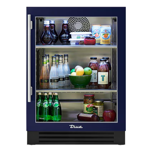 True 24 Inch 5.6 Cu. Ft. Right Hinge Glass Door Outdoor Refrigerator – Cobalt w/ Pewter Handles – TUR-24-R-OG-C~DSK-078-H05