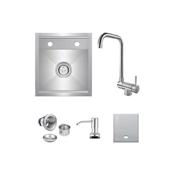 BBQGuys Signature 15 X 15 Outdoor Rated Stainless Steel Drop-In Bar Sink W/ Sink Strainer – BBQ-SM1515