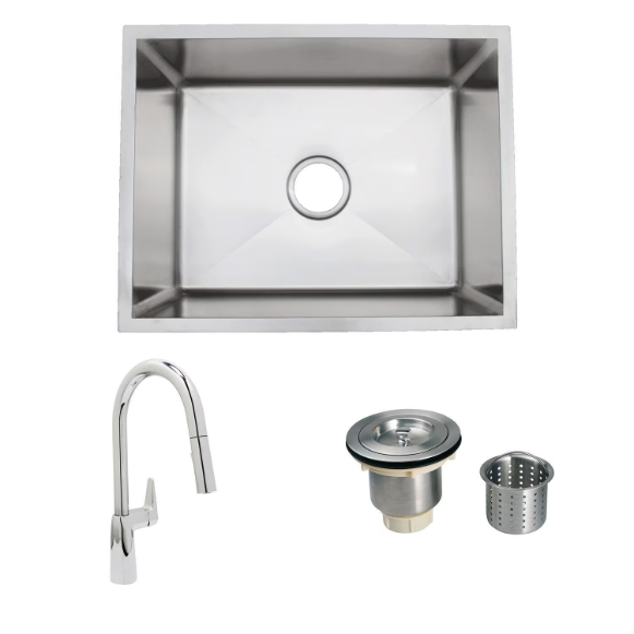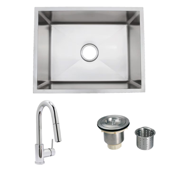 Urban Place Zero-Edge 24 X 19 Stainless Steel Outdoor Sink with Huntington Brass Dual Spray European Style Pull Down Faucet, Grid and Strainer Basket
