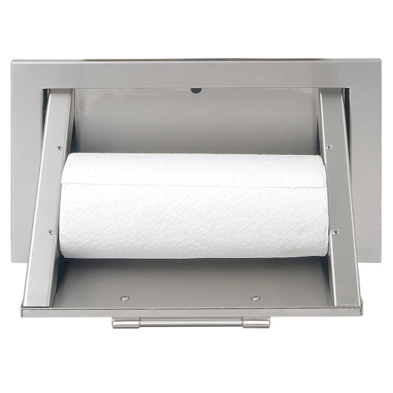 - Downward opening drawer provides convenient and discreet access to paper towels