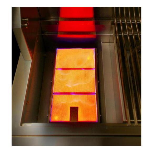 Alfresco brings restaurant-inspired luxury and professional grilling results to your outdoor kitchen with the ALXE grill. This 42-inch built-in gas grill has two (2) high-temperature, titanium and stainless steel blend burners and one ceramic sear zone burner that produce 27,500 BTUs each, for a total of 82,500 BTUs of total cooking power on the grilling surface. The integrated rotisserie system has a 18,500 BTU rear ceramic infrared burner and a whisper-silent motor with a chain-driven spit that has 120 pounds of turning torque. Grill also features a 5,000 BTU smoker system with a stainless steel burner that ejects smoke at 200 degrees onto your grill and a smoker drawer that is large enough to hold peppers, herbs, and wood chunks and is sealed to hold liquids as well. Unique pyramid-shaped ceramic briquettes eliminate hot spots and maximize flavor as they evenly deliver heat to the cooking surface. An air-cooled front control panel keeps your knobs and control panel cool while grilling, protecting both the equipment and your hands from high heat. The 600 degree heat-resistant silicone sleeves protect the electrical wires of the grill. This Natural Gas gas grill has a spacious 770 square inches of actual grilling area, double-lined hood for durability, a removable 3-position warming rack, and heavy-duty rolled stainless steel cooking grids capable of providing perfect steakhouse results. ALXE model grills also feature rich amber LED front panel lights, stainless steel push button ignition, lighting and rotisserie controls, a new torsion spring-assisted hood system, and nickel-plated, ergonomically-designed knobs and bezels. This all-American made Alfresco ALXE 42-Inch Built-In Natural Gas Grill With Sear Zone And Rotisserie in Jet Black Matte has a grill cover included.