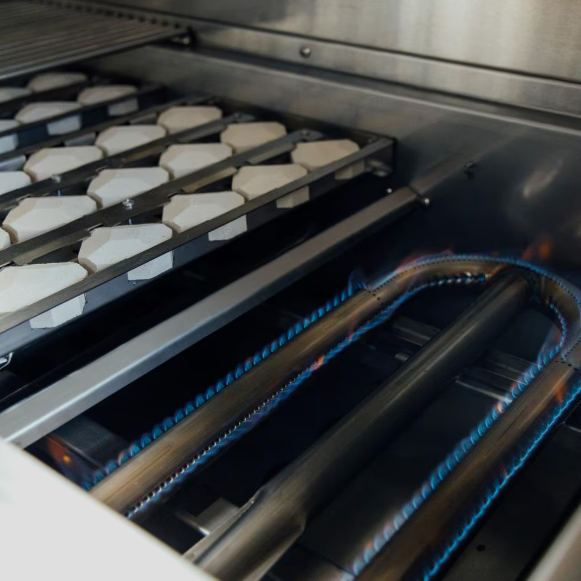 The Atlas 36 Inch Natural Gas Grill is part of a high―performance, luxury grill line made entirely in the USA. Elevate your outdoor lifestyle with the seamless design and superior performance of the Atlas Grill. #304 stainless steel construction, interior and exterior lighting, easy―clean briquette trays, and a dual―position warming rack system are just a few of the features that ensure you get the most out of your outdoor kitchen in both style and functionality. The all―new square cooking grates increase the contact surface with food, adding beautiful grill marks and unparalleled flavor.