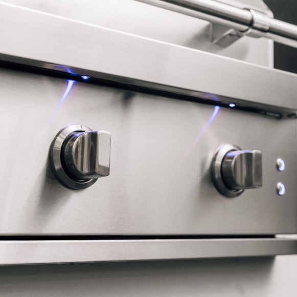 The Atlas 36 Inch Propane Grill is part of a high―performance, luxury grill line made entirely in the USA. Elevate your outdoor lifestyle with the seamless design and superior performance of the Atlas Grill. #304 stainless steel construction, interior and exterior lighting, easy―clean briquette trays, and a dual―position warming rack system are just a few of the features that ensure you get the most out of your outdoor kitchen in both style and functionality. The all―new square cooking grates increase the contact surface with food, adding beautiful grill marks and unparalleled flavor.