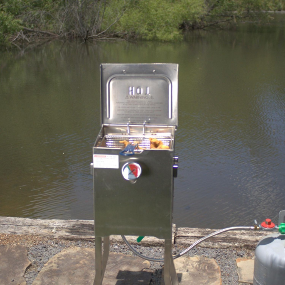 Designed for strength, safety, and function, the Bayou Classic outdoor fryer is an essential tool for your patio. This 2. 5 gallon fryer features all stainless steel construction, a temperature gauge and one stainless steel fryer basket with a cool-touch handle. The V-Bottom design keeps base oil temperature cooler than frying temperature so the batter does not burn and the oil stays clean and lasts longer. The legs can be adjusted to the perfect cooking height. Keep your hands free of oil by using the drain valve to empty the fryer. The fryer also includes a 10 PSI preset regulator and stainless steel braided hose for connecting to your propane tank.