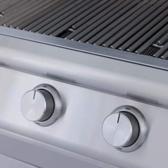 The Blaze BCM keeps things simple with a streamlined knob design—no lighting, no extras—just straightforward control. Heavy-duty 9 mm triangular cooking grates deliver bold sear marks, while removable lower heat baffles and a full-width, roll-out drip tray make cleanup quick and easy. Available in 3-burner and 4-burner configurations with an optional cart for freestanding use. Backed by a lifetime residential warranty and a 3-year multi-user warranty.