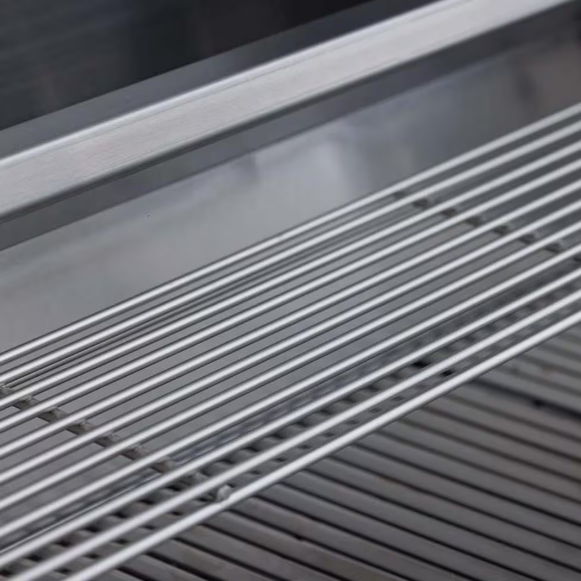 The Blaze BCM keeps things simple with a streamlined knob design—no lighting, no extras—just straightforward control. Heavy-duty 9 mm triangular cooking grates deliver bold sear marks, while removable lower heat baffles and a full-width, roll-out drip tray make cleanup quick and easy. Available in 3-burner and 4-burner configurations with an optional cart for freestanding use. Backed by a lifetime residential warranty and a 3-year multi-user warranty.