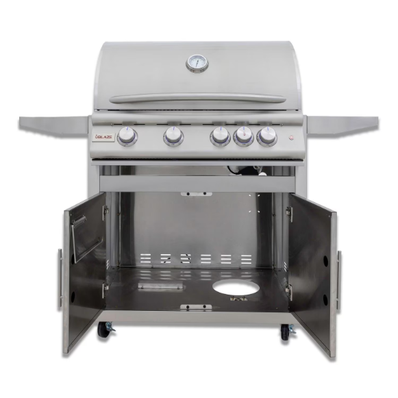 Made of cast 304-grade stainless steel with no vulnerable weld spots, the Blaze LTE+ natural gas grill is engineered for whatever challenges the elements (or your menu) can throw at it. The stainless steel grill hood is double lined, shielding the outer layer from heat discoloration while also keeping more heat where it matters most. This LTE+ model also includes a hood assist mechanism that makes opening and closing easier than ever in addition to new, improved lighting, which remains on while in use, and LED illuminated control system with safety glow lighting. The stainless steel grill cart features two soft close front doors for storing your grill cover and BBQ accessories. The cart also includes four heavy duty caster wheels, allowing you to relocate the grill easily whenever necessary, and two side shelves for a convenient work area. All backed by Blaze’s best-in-class, lifetime warranty.