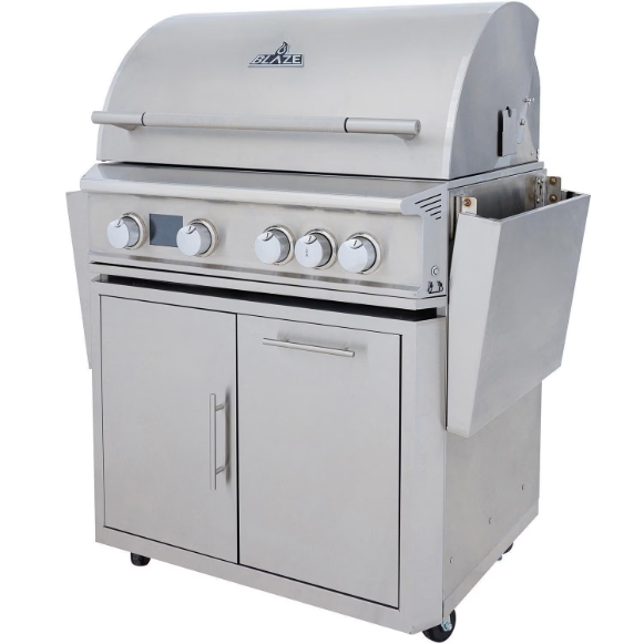 Like all Blaze gas grills, it’s made of 304 stainless steel down to the cast stainless steel burners for impressive durability, a double-lined hood to prevent discoloration, and a reliable flame-thrower ignition.
