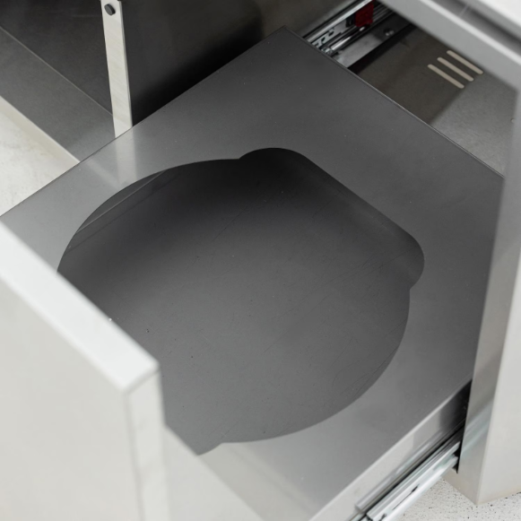 The storage doors and drawers are soft close to absorb energy and allow the doors and drawers to close smoothly and silently. This also limits wear and tear on your cabinets. Plus…it’s pretty cool.