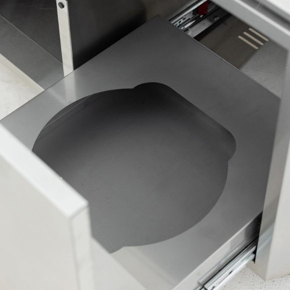 The hood has an ergonomic rotating, knurled “H” handle, and combined with spring assistance you’ll find it’s practically effortless to open and close the lid.