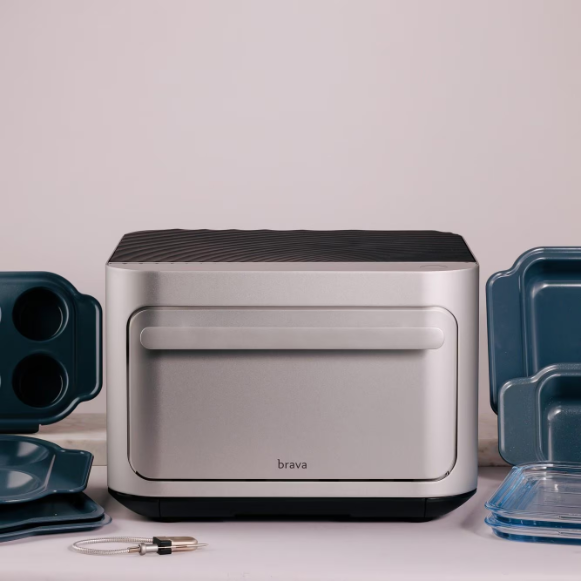 The Brava Oven Bake & Breakfast Set automatically cooks full meals in record time — 2-4x faster than traditional ovens making it ideal for busy professionals and families. Its 3-zone and multi-level cooking are what separates Brava from the rest. Featuring 10 appliances in one, Brava can toast, reheat, sear, bake, dehydrate, slow-cook, reheat, air-fry, keep warm, and cook rice. With over 8,000 delicious, well-balanced meals at the push of a button, home cooking has never been easier or faster with one of the best rated smart appliances and countertop ovens on the market.