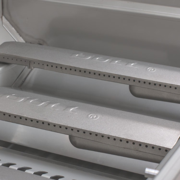 Nothing stands up to the affordable quality of a Bull BBQ grill. Constructed of 14 gauge, 304 stainless steel, this grill smokes the competition for backyard BBQ quality. Four 15,000 BTU burners that push 60,000 BTUs of total cooking power on the grilling surface, with an additional 15,000 BTU infrared rotisserie backburner for really high heat. With 5 Bull sure-lite gas valves, this natural gas grill performs above and beyond most gas grills. Four cast stainless burners and an impressive 600 square inch cooking area promises grilling perfection. The heavy duty thermometer helps keep track of food temperatures so your meal is a masterpiece every time. Five heavy duty, zinc knobs make operation easy. The rotisserie and chrome plated spit & rod help to enhance your grilling options, while the 210 square inch warming rack keeps your meal heated and ready to eat. The built-in lights make it easy for you to grill into the night. A full length handle and dual-lined roll top hood makes interior access safe and easy. The grill cart is made with 14 gauge stainless steel and features 2 side shelves for extra work space and 4 durable casters for easy movement. All Bull grills are CSA Gas Certified.
