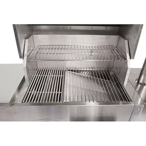 The Cookshack Fast Eddys 32-Inch Pellet Grill features 201 grade stainless steel double walled construction surrounding 850 degree Fahrenheit Spin-Glas insulation, keeping it cool to the touch on the outside. This Cookshack Fast Eddys Pellet Grill is a pellet grill and smoker in one. It has 4 cooking zones maximizing your cooking opportunities. The cooking zones include a 10 x 18-inch direct cooking rack, an 18 x 18-inch indirect cooking rack, a 10 x 28-inch top rack and a 19 x 13 x 4-inch warming drawer for a total of 784 square inches of cooking area. The direct cooking area has a 304 stainless steel cooking grate while the cooking grate for the indirect cooking area is nickel plated. The Cookshack pellet grills are the only pellet grills on the market that uses charbroil technology offering the same great flavor as high end commercial grade charbroiler with high production and shorter temperature recovery time. Includes a front access ash drawer for easy ash removal and a warming drawer where you can keep your food warm or use as a cold smoker. It has a 25lb hopper capacity and a burn rate of 1. 2lb per hour at 400 degrees Fahrenheit eliminating the need to constantly fill the hopper and tend the grill. It also features an electronically controlled temperature gauge with digital controller that eliminates large heat fluctuations that will dry out your food. This pellet grill comes with one side shelf, 4 casters and 80lbs of Cookshack Hickory Pellets.