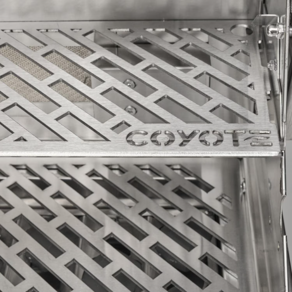 The Coyote SL-Series 36 inch built-in propane grill offers innovative safety features & top of the line performance. Built from premium 304 stainless steel, this grill is packed with premium features including a spring-assisted hood, interactive lighting, & warming rack. The Coyote logo throw light not only makes a statement but illuminates your grilling area for the ultimate nighttime grilling experience. The double walled hood provides excellent insulation, helping to retain heat more effectively. The integrated wind guard ensures consistent heat and performance, so you can keep grilling even in windy conditions. The newly updated design also includes sleek knob and bezel styling, an improved end cap, and a sturdy handle for a refined look. Unique volcanic stone briquettes work in tandem with the four powerful Infinity burners to provide excellent heat retention & consistent heat across the laser-cut grates. The interchangeable sear burner, rear burner, & rotisserie kit offer additional versatility, giving you the flexibility to create a variety of dishes. Designed for optimal safety & reliability, the innovative safety valve & thermocouple system allows gas to flow only when a flame is present. If the flame goes out, the thermocouple automatically shuts off the gas, preventing any potential hazards. Grill with peace of mind and enjoy outdoor cooking in your backyard for years to come.