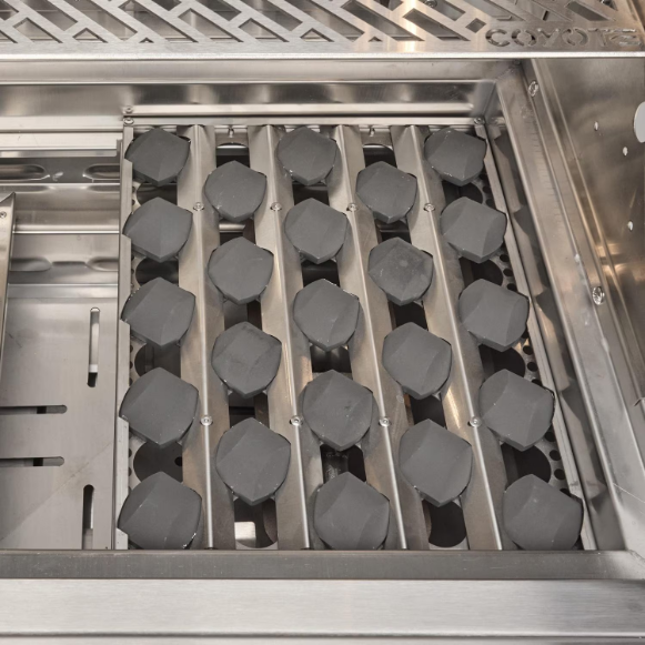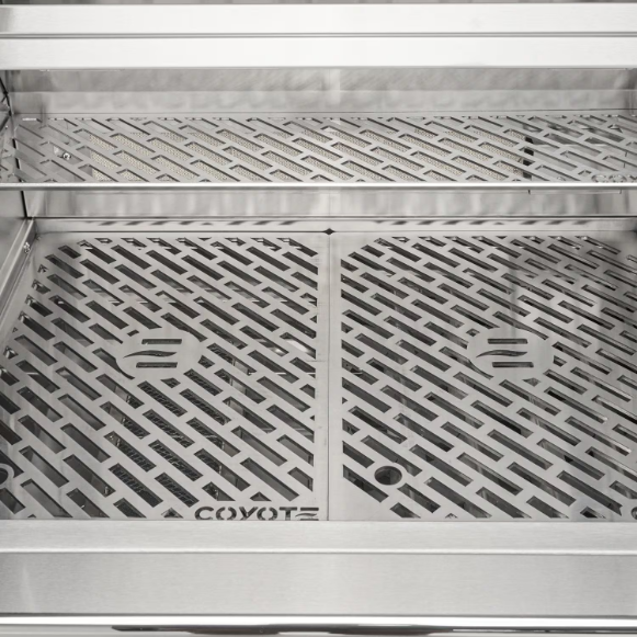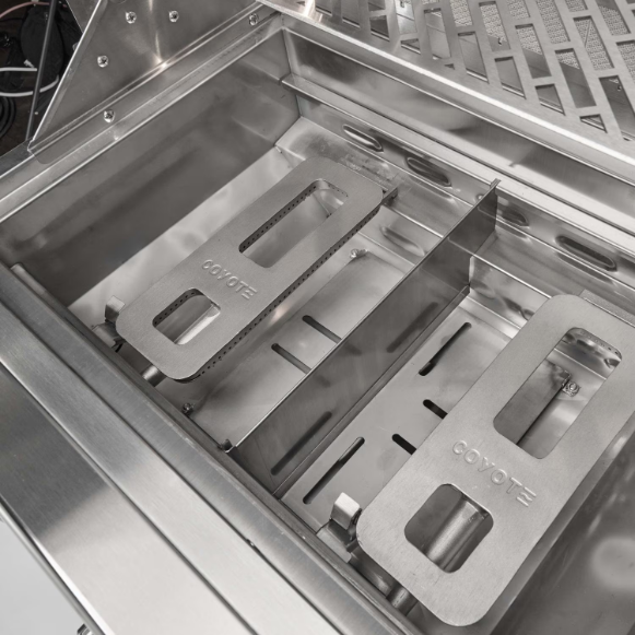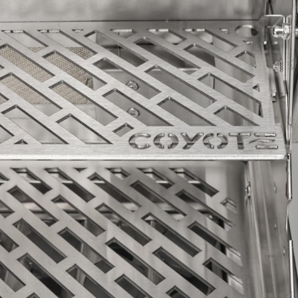 The Coyote SL-Series 36 inch freestanding propane grill offers innovative safety features & top of the line performance. Built from premium 304 stainless steel, this grill is packed with premium features including a spring-assisted hood, interactive lighting, & warming rack. The Coyote logo throw light not only makes a statement but illuminates your grilling area for the ultimate nighttime grilling experience. The double walled hood provides excellent insulation, helping to retain heat more effectively. The integrated wind guard ensures consistent heat and performance, so you can keep grilling even in windy conditions. The newly updated design also includes sleek knob and bezel styling, an improved end cap, and a sturdy handle for a refined look. Unique volcanic stone briquettes work in tandem with the four powerful Infinity burners to provide excellent heat retention & consistent heat across the laser-cut grates. The interchangeable sear burner, rear burner, & rotisserie kit offer additional versatility, giving you the flexibility to create a variety of dishes. The stainless-steel grill cart features self closing doors and drawer hinges, lockable casters, and a slide out shelf for propane tank storage. Designed for optimal safety & reliability, the innovative safety valve & thermocouple system allows gas to flow only when a flame is present. If the flame goes out, the thermocouple automatically shuts off the gas, preventing any potential hazards. Grill with peace of mind and enjoy outdoor cooking in your backyard for years to come.