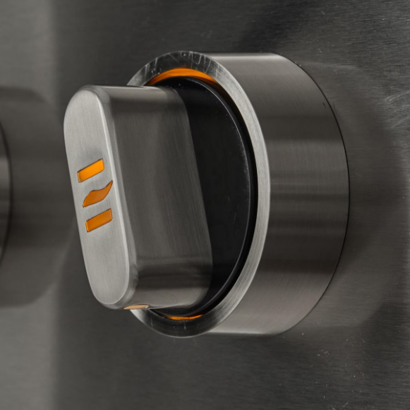 • Color-shifting LED knobs indicate temperature changes from low to high