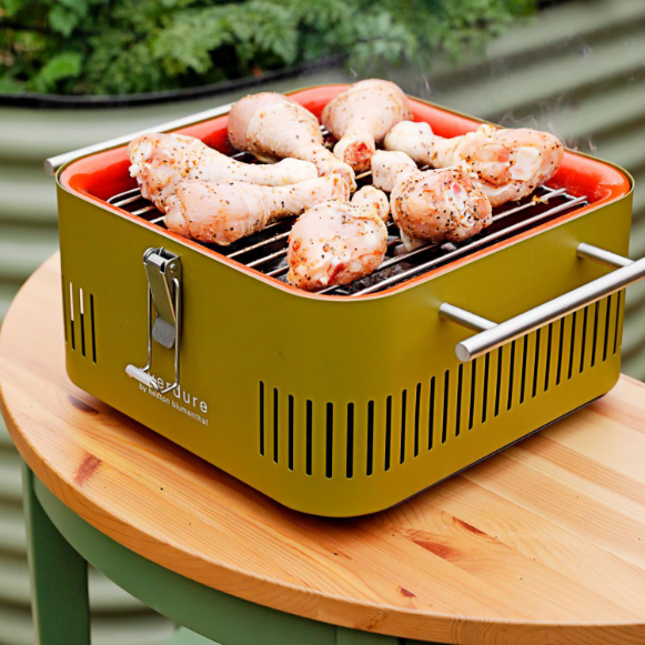 With an integrated base to protect any surface, use the Cube barbeque grill anywhere. The built-in heat protection shield makes it the perfect tabletop charcoal grill, tailgating grill, RV grill, or travel grill.