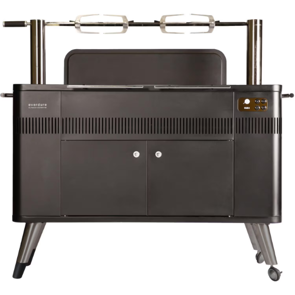 Keep everything from small chickens to suckling pigs firmly in place on the rotisserie rod thanks to the jaw-like Cliplock Forks. Stow away rotisserie kit grill accessories in the side compartment of the Everdure HUB II grill.
