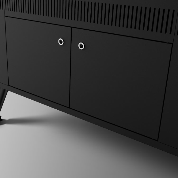 - Two double-lined doors allow access to a large storage area under the grill