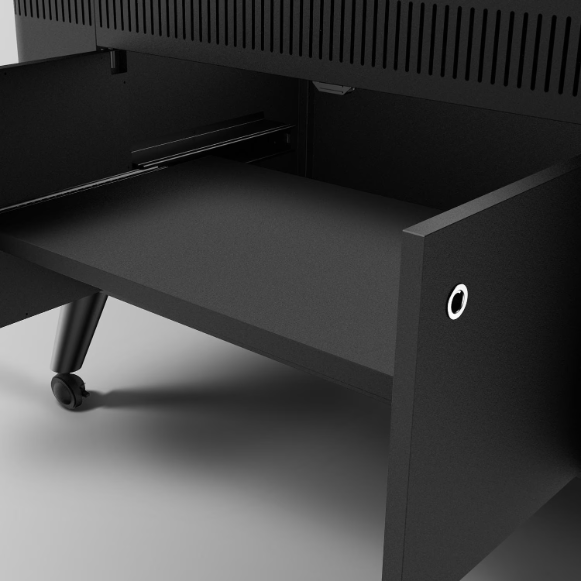 Equipped with a retractable power cord and two-shelf storage/warming area behind double-lined doors. It has all the power and capabilities of the HUB but is enhanced with additional automated touch controls and titanium finishing.
