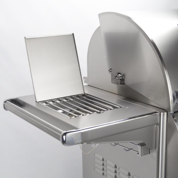 Known for crafting American-made premium grills for over 75 years, Fire Magic is dedicated to providing you with a luxurious outdoor cooking experience. The Aurora A430S freestanding propane gas grill features 432 square inches of premium cooking space wrapped in a stylish, modern package that is built to last. It features 304 stainless steel construction for lasting quality, and sleek styling with a seamless control panel that comes with comfort touch control knobs and LED backlighting. The double walled, spring assisted hood opens 90 degrees for easier access and more efficient exhaust. It features an integrated analog thermometer with an angled bezel for easier viewing. Inside, this grill features two cast stainless steel E-burners, made with 1/4-inch thick walls and precision porting, that combine for 50,000 BTUs. Reliable hot surface ignition always lights your burners where others might fail. Flash tubes serve as a backup. Flavor grids sit above the burners to spread heat evenly and protect the burners from debris and grease. The cooking surface consists of the patented Diamond Sear cooking grids. These grids feature a matte, non-stick surface, and a trapezoidal shape that efficiently transfers heat from the burner to the wide surface of the cooking grids. The warming rack above can be adjusted and moved out of the way when not in use. For night time grilling, the interior of the grill is lit by two halogen lights. A disposable drip tray system makes cleanup a breeze and reduces the chance of grease flareups. The grill comes on a stainless steel cart which includes two storage doors, a slide-out propane tank, and two side shelves. One of these shelves folds down while the other contains a flush mounted 15,000 BTU side burner for extra cooking versatility. Locking casters keep the cart in place. A 120 VAC power source is required for ignition, as well as for the lighting functions. With many of the same premium features as the Echelon series of grills, the Aurora series from Fire Magic is the perfect centerpiece for your luxury outdoor kitchen.