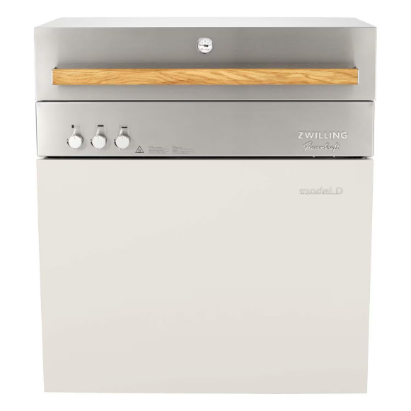 Transform the way you cook and discover countless cooking possibilities with the ZWILLING Flammkraft Model D Grill in Ivory White, featuring innovative infrared technology. An award winning design, versatile infrared burners that create individual cooking and heating zones, high quality stainless steel and expert German engineering will set a new standard for outdoor kitchens and cooking ; Discover the Model D difference. Constructed entirely of high quality stainless steel and crafted in Germany, the Model D is versatile, powerful and the perfect ingredient for any outdoor kitchen, featuring faster and hotter grill temperatures between 167 and up to 1652 degrees Fahrenheit. Form meets function. Created with convenience in mind, the Model D features a substantial, yet sophisticated design that looks good and works even harder, featuring smart storage solutions, with built in features to maximize space and an integrated wind deflector. And while the Model D stands alone, its also built in compatible for any outdoor kitchen. Get in the zone. The pioneering placement and arrangement of burners creates individual cooking and heating zones so you can grill, roast and more with direct and indirect heat (think convection oven too). The large, multipurpose surface also allows you to cook different foods at varying temperatures. And the integrated, all purpose oven trays are perfect for baking up sumptuous sides, veggies and more. Enjoy endless possibilities and meals. Make the most of your ZWILLING Flammkraft outdoor cooking experience with grilling accessories specially designed to complement the grill area. Prepare thin strips of Wagyu beef, tender scallops and crunchy vegetables on the Teppanyaki plate, whip up doughy delights with the pizza stone, saute stir frys in the wok or cook up chicken on the rotisserie skewer. Open and shut. Designed so that you can cook with the hood open or shut, the hood of the Model D is substantial, and features a double wall for complete insulation which ensures it heats up quickly and keeps an even temperature. Easy to clean. The Model D is easy to clean and maintain, with a convenient drawer for draining grease. Grates and burners can be removed and inserted quickly for easy cleanup and there s also an integrated waste bin compartment. Every Model D comes with a storage box that can also be used to soak and clean the grill parts. Color your (outdoor) world. The Model D is available in 7 timeless shades.