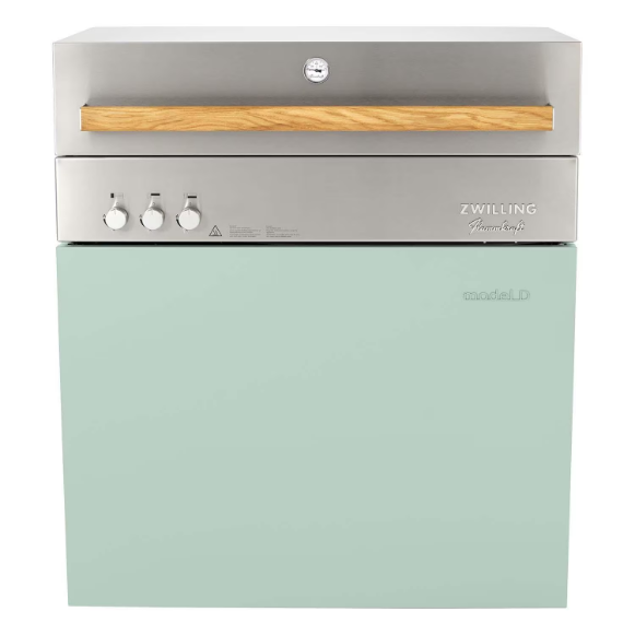 Transform the way you cook and discover countless cooking possibilities with the ZWILLING Flammkraft Model D Grill in Pool, featuring innovative infrared technology. An award winning design, versatile infrared burners that create individual cooking and heating zones, high quality stainless steel and expert German engineering will set a new standard for outdoor kitchens and cooking ; Discover the Model D difference. Constructed entirely of high quality stainless steel and crafted in Germany, the Model D is versatile, powerful and the perfect ingredient for any outdoor kitchen, featuring faster and hotter grill temperatures between 167 and up to 1652 degrees Fahrenheit. Form meets function. Created with convenience in mind, the Model D features a substantial, yet sophisticated design that looks good and works even harder, featuring smart storage solutions, with built in features to maximize space and an integrated wind deflector. And while the Model D stands alone, its also built in compatible for any outdoor kitchen. Get in the zone. The pioneering placement and arrangement of burners creates individual cooking and heating zones so you can grill, roast and more with direct and indirect heat (think convection oven too). The large, multipurpose surface also allows you to cook different foods at varying temperatures. And the integrated, all purpose oven trays are perfect for baking up sumptuous sides, veggies and more. Enjoy endless possibilities and meals. Make the most of your ZWILLING Flammkraft outdoor cooking experience with grilling accessories specially designed to complement the grill area. Prepare thin strips of Wagyu beef, tender scallops and crunchy vegetables on the Teppanyaki plate, whip up doughy delights with the pizza stone, saute stir frys in the wok or cook up chicken on the rotisserie skewer. Open and shut. Designed so that you can cook with the hood open or shut, the hood of the Model D is substantial, and features a double wall for complete insulation which ensures it heats up quickly and keeps an even temperature. Easy to clean. The Model D is easy to clean and maintain, with a convenient drawer for draining grease. Grates and burners can be removed and inserted quickly for easy cleanup and there s also an integrated waste bin compartment. Every Model D comes with a storage box that can also be used to soak and clean the grill parts. Color your (outdoor) world. The Model D is available in 7 timeless shades.