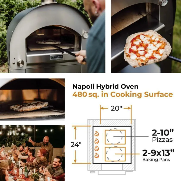 The Napoli on cart, with a 20″ X 24″ cooking area provides a solid 480 sq in.of cooking space. Paired with a high-performance 54,000 BTU burner, the Napoli oven ensures efficient and precise heat, elevating your culinary creations to new heights. With the option to choose between gas and wood-burning, the Napoli brings versatility to your outdoor cooking adventures. The Napoli stands as a testament to high-quality craftsmanship and offers an exceptional cooking experience.