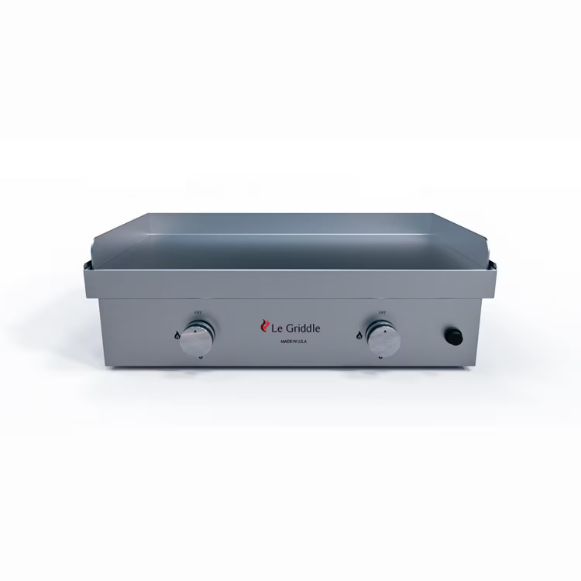 Enjoy the benefits of healthy, French-style griddle cooking with the Le Griddle natural gas griddle, designed for built-in installation or countertop use. Featuring a professional-style 304 stainless steel griddle surface and components, the Le Griddle 30-inch natural gas griddle offers excellent heat distribution thanks to a 1/2-inch thick enameled cast iron sub-plate below the cooking surface. Two 304 stainless steel U-shaped gas burners rated at 18,000 BTUs combined provide even heating and can be individually controlled with separate control knobs. The easy to use electronic ignition system is powered by a single AA battery and features a safety valve and thermocouple to automatically cut off gas supply in the event of accidental flame extinction, while ventilation cutouts allow proper airflow to prevent gas buildup and overheating. Cleanup is easy with the removable griddle plate and curved grease collection tray, designed to capture oil and fat for simple disposal. The Le Griddle ships configured for propane gas and easily converts for use with propane using the included conversion kit and instructions. This product does not include a propane gas regulator or hose. Stainless steel lid sold separately. 24 inches of clearance is required for the lid to fully open.
