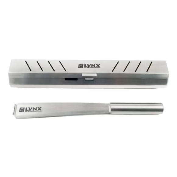 Build the outdoor kitchen of your dreams with the superior craftsmanship and innovative features found in this 54-inch natural gas BBQ grill from Lynx. The quality begins outside with gleaming, high-grade 304 stainless steel that is seamlessly welded to eliminate areas where grease and moisture can collect. A patented design deflects wind and allows the grill to vent properly, stabilizing critical surface temperatures when cooking in windy conditions. Inside, a 23,000 BTU Lynx Trident adjustable infrared burner allows you to sear thick-cuts perfectly, or throttle back to cook more delicate items while a 25,000 BTU ceramic burner delivers superior heat retention over tube burners so checking progress has minimal impact on cooking performance. The two burners push 48,000 BTUs of total cooking power on the grilling surface. An advanced ignition system uses a hot element positioned directly above the burner port for reliably safe start-up and a large capacity smoker box allows you to add extraordinary flavor to all the things you like to grill. Over the burner, an array of fixed position ceramic briquettes ensures precise, even heat distribution to the 600 square-Inch main cooking grid while a secondary grid provides an additional 240 square-inches for a comprehensive 840 square-inches of overall grilling space. The Lynx L54TR-PBNG in Pacific Blue also has a dual-position internal rotisserie with heavy-duty, 3-speed motor and rear infrared burner to raise your cooking options to their full potential. Lynx made sure you have easy access to all these fine cooking features by adding lift assist and a handle that rotates fluidly as you raise and lower the hood. Like to grill into the night? The adjustment knobs on the control panel sport blue LED accent lights for precise control and ultra-bright internal halogen lights illuminate the grilling surface eliminating guess-work. Proudly made in the USA. Bring the power and performance of Lynx innovation to your outdoor kitchen with the L54TR-PBNG Built-in Natural Gas Grill.
