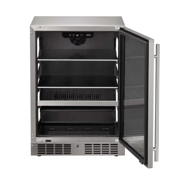 Experience premium beverage storage with our 24-Inch Beverage Center, designed to be used in both indoor & outdoor settings. Choose between a timeless stainless steel model or a panel-ready option for seamless customization. The interior is crafted in matte black with stainless steel accents, offering a modern aesthetic. Featuring 6-color multi-point LED lighting in adjustable white & cool tones. Equipped with adjustable glass shelving and wire wine racks, plus additional lower storage, this spacious 5.1 cu. ft capacity accommodates a combination of 9 wine bottles and 154 cans, or 15 wine bottles and 136 cans.