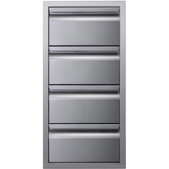 Introducing new outdoor kitchen island access doors and drawers from Memphis Wood Fired Grills, made with premium 304-grade stainless steel for lasting quality that will complement any outdoor kitchen setting. This 15-inch quadruple access drawer gives you convenient storage space for your BBQ tools and accessories. The easy touch self-closing drawers glide smoothly on heavy-duty, stainless steel drawer slides and are rated to hold up to 100 pounds.
