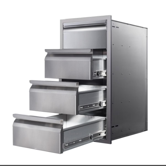- Heavy-duty stainless steel drawer slides support up to 100 pounds