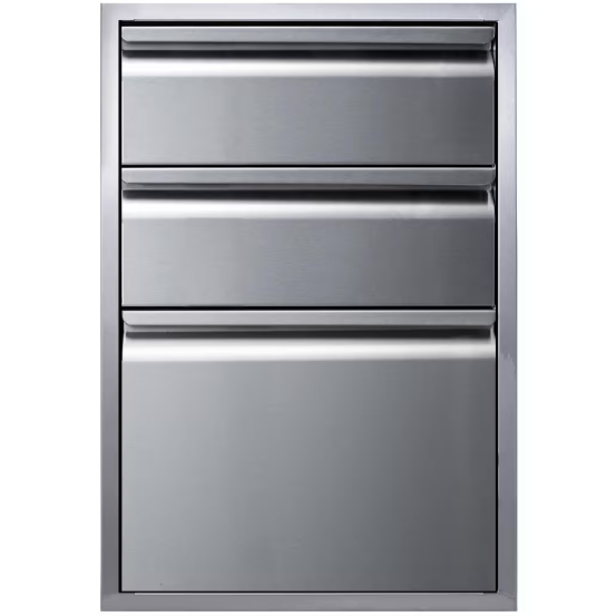 Three stacked drawers provide convenient storage space for your outdoor kitchen