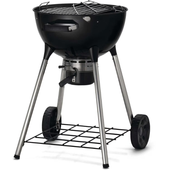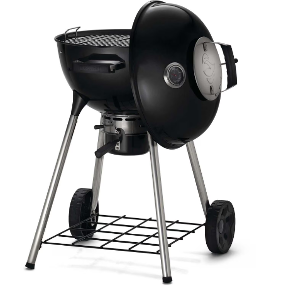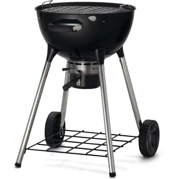 Napoleon‘s compact and agile Charcoal Kettle Grill, the NK18K―LEG, is an 18―inch kettle that is ideal for any charcoal enthusiast. Grill and slow roast with ease, or smoke by including your favorite wood chips and chunks. When charcoal grilling, being able to control heat through airflow is essential. The adjustable air vents make it easy to manage airflow for precise temperature control, including top venting that is protected from the elements. The Vortex heat management system improves convection within the grill for better searing and smoking as well as improved fuel efficiency. Stainless steel grids heat quickly and need little maintenance, they are hinged to allow easy addition of extra charcoal, refilling water pans, and addition of wood for smoking. The integrated temperature gauge helps you maintain the perfect temperature while you grill at a comfortable height, thanks to improved leg joints that provide rock―solid stability and an elevated grilling surface for your barbecue needs.