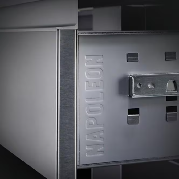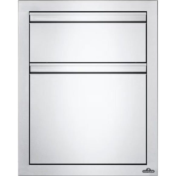 Customize your outdoor grill island with Napoleon built-in components. Measuring 18 inches wide by 24 inches high, this stylish stainless steel drawer and waste bin drawer combo gives you the added storage that every outdoor kitchen needs. Anodized aluminum handles pair with soft closing hardware to provide durability and comfort. The seamless trim provides flexible and flawless installation. A slide-out drawer specifically built for trash bins presents a convenient solution to waste management when cooking or entertaining outdoors. You know you can expect quality when Napoleon has their named stamped subtly into the side of this sliding drawer. These built-in storage components are ideal for any outdoor kitchen. Does not include trash bins.