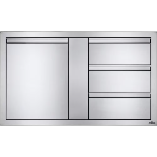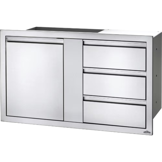 Customize your outdoor grill island with Napoleon built-in components. Measuring 42 inches wide by 24 inches high, this stylish stainless steel large single door and triple drawer combo gives you the added storage that every outdoor kitchen needs. Anodized aluminum handles pair with soft closing hardware to provide durability and comfort. The seamless trim provides flexible and flawless installation. You know you can expect quality when Napoleon has their named stamped subtly into the side of this sliding drawer. These built-in storage components are ideal for any outdoor kitchen.