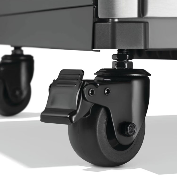 Improved heavy-duty castor wheels allow you to more easily relocate the grill when needed.