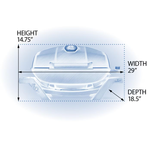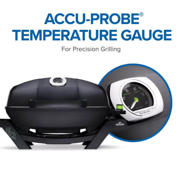 Grilling on the go is made easy with portable grills from Napoleon. The Napoleon TravelQ PRO portable electric grill boasts a 1500 Watt electric burner and 285 square inches of cooking area with a high top lid for cooking larger cuts of meat. The removable, porcelainized cast iron wave cooking grids create the trademark Napoleon sear lines. The electric burner comes with simple temperature control, capable of searing heat or low and slow style cooking. It is removable for easy cleaning and for access to the porcelain drip tray below. The lid locks to keep it secure and features a wind proof design which holds in heat. An Accu-Probe temperature gauge is built into the lid for easy temperature monitoring. The grill easily sets up in 10 seconds, and uses a standard 120 VAC 60 Hz power source.