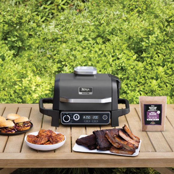 Many of us have a Ninja air fryer in our kitchens. If you’re like us, you’ve probably tried to push its limits and tried to air-fry some things that might be outside the norm. For instance, we swear by air-frying sausage links, hot dogs, and any number of non-usually-fried foods. Word must have gotten out because Ninja has now brought us a product designed to cook steaks, burgers, ribs, roasts, brisket, and much more and they’ve engineered it to work outdoors! Ninja has packed so many capabilities and features into their Woodfire outdoor grill, you won’t believe you get all this in a product that has exterior dimensions of less than 3-1/2 cubic feet and weighs just 31 pounds!