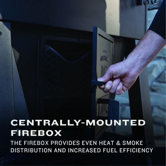 Centrally-mounted firebox provides even heat & smoke distribution and increased fuel efficiency