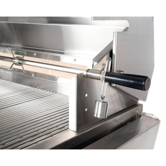 This PGS Legacy Big Sur 51-Inch Gas Grill features a 304 grade stainless steel exterior, four 25,500 BTU heavy duty stainless steel burners that push 102,000 BTUs of total cooking power on the grilling surface. The 14,000 BTU ceramic infrared backburner delivers cooking flexibility, and the heavy duty rotisserie motor, spit rod, and counter balance is capable of supporting up to 15 lbs. The ceramic Moon Roks with stainless steel rock grate provide even heat and perfect smoke control, and the 5/16 inch stainless steel rod cooking grids with Vari Grid spacing offers grilling versatility across 960 square inches of main cooking area. Grill also features the Sure Start continuous spark electronic ignition, convenient lighting tube for ignition backup, and a 336 square inch stainless steel warming rack. Grill includes propane regulator and 16-inch hose.