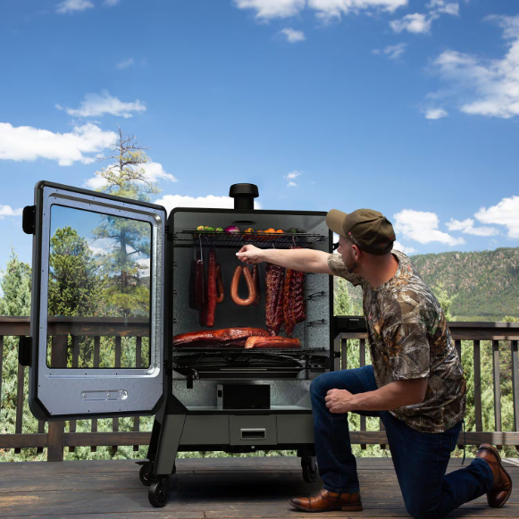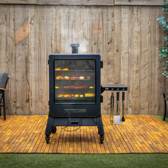 Master your backyard smoking with this Wi-Fi and Bluetooth enabled Pit Boss Navigator 6-Series Vertical Pellet Smoker, delivering an impressive 2,224 sq. in. of cooking space across 5 oversized racks – each large enough to hold two full-size foil pans. With digital controls, 5 degree temperature increments, and a smoking range of 130 – 420 degrees, it’s built for precision and consistency. The 75 lb. hopper, convection airflow, rapid igniter, large viewing window, and durable steel construction offer unmatched convenience and performance – all backed by a 5-year warranty.
