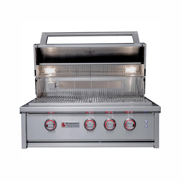The New RCS Cutlass Elite 30-Inch 3-Burner Built-In Propane Grill features over 10 impressive upgrades. A newly designed control panel includes color-changing LED control knob lights for a sleek, modern appearance. Each burner now delivers 20,000 BTUs for increased cooking power and performance. The upgraded cooking grids feature square, flat-surface grates that enhance heat contact and improve searing capability. A spring-assisted hood allows for easier opening with less effort, while a professional, easy-to-read temperature gauge and brighter internal halogen lights improve visibility and control. These new Cutlass Elite grills also include a stainless steel smoker box for added flavor and versatility.