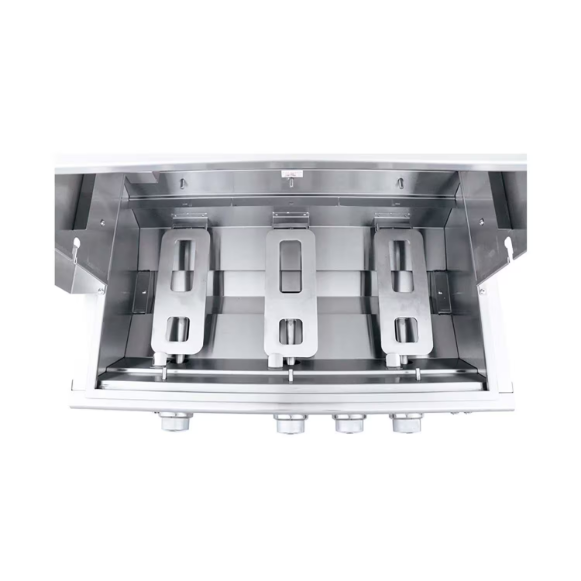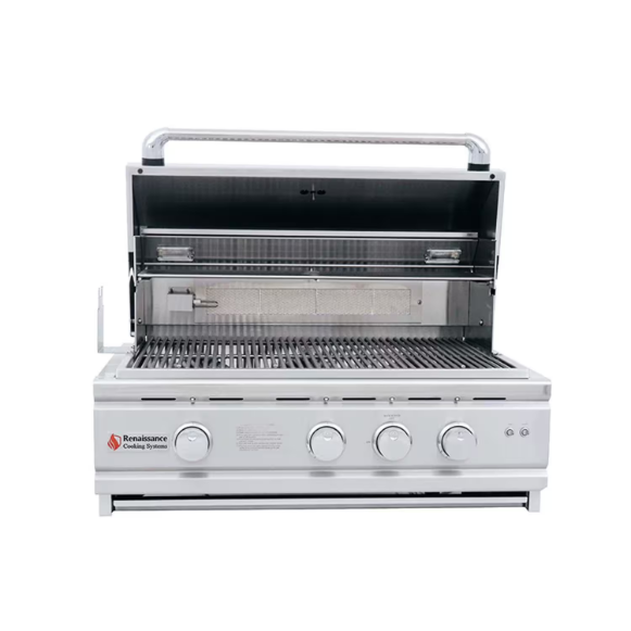 The RCS Cutlass Pro 30 Inch Built-In Propane Grill is designed for the weekend cook as well as the professional chef. With cast stainless steel burners, solid stainless steel rod cooking grids and warming rack, plus the 304 stainless steel housing, these grills will provide you with many years of great tasting food. Other quality features include the rear infrared rotisserie burner with motor, spit rod with two 4 prong forks, heat zone separators, interior halogen lights, LED illuminated control knobs and a full width slide out drip tray. Also included is a sure strike ignition system, which is the most reliable in the industry. Optional infrared searing burner upgrade is available! These grills are gorgeously sophisticated, yet very simple to operate.